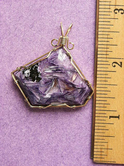 Scaled image 03110005.jpg: ITEM # CH-50, $90.00, BEAUTIFUL purple charoite cab set in a gold filled wire wrapped pendant.�