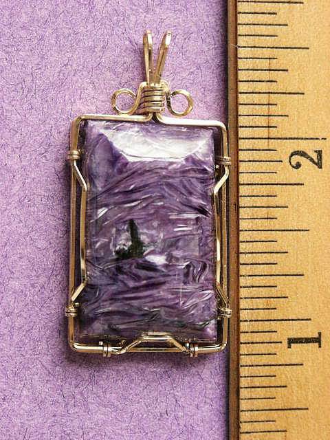 Scaled image 03110008.jpg: ITEM # CH-52, $85.00, BEAUTIFUL purple charoite cab set in a gold filled wire wrapped pendant.�