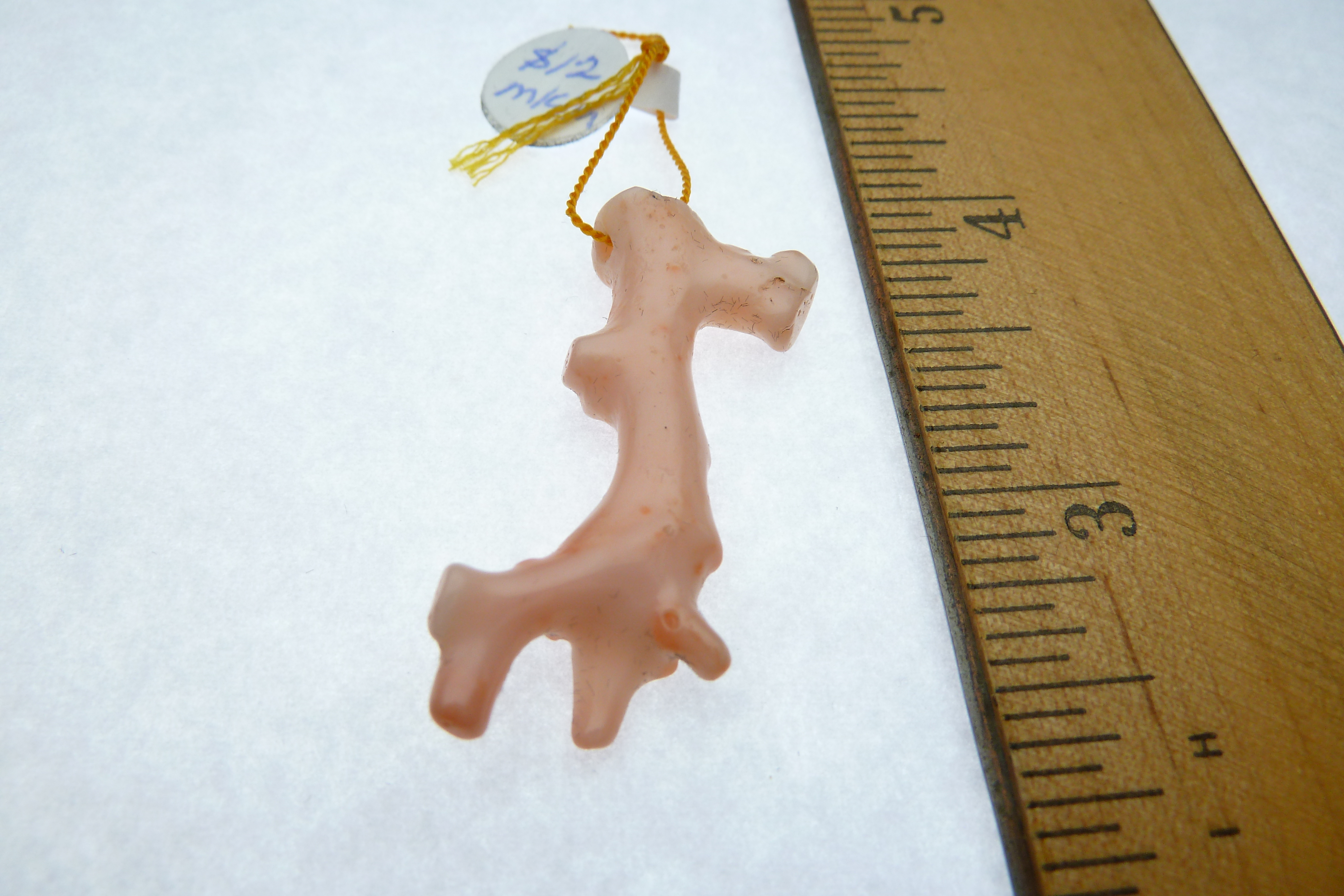 Scaled image P1010944.JPG: Item #Coralbranch1, Price $12.00 South Pacific coral branch. Drilled coral brach ready for stringing. Coral branch is 38 mm long by 20 mm wide. Drill hole size is about 1.0 mm. This stone is drilled at the top of the branch.�