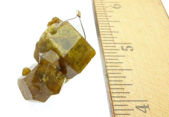 Scaled image P1020034.JPG: Item #SpessartineGarnet1, Price $64.00 Natural Spessartine garnet crystal. Crystal is drilled through the largest crystal. Bead is 30mm long by 18mm wide. Drilled hole size is about 2.0 mm.�