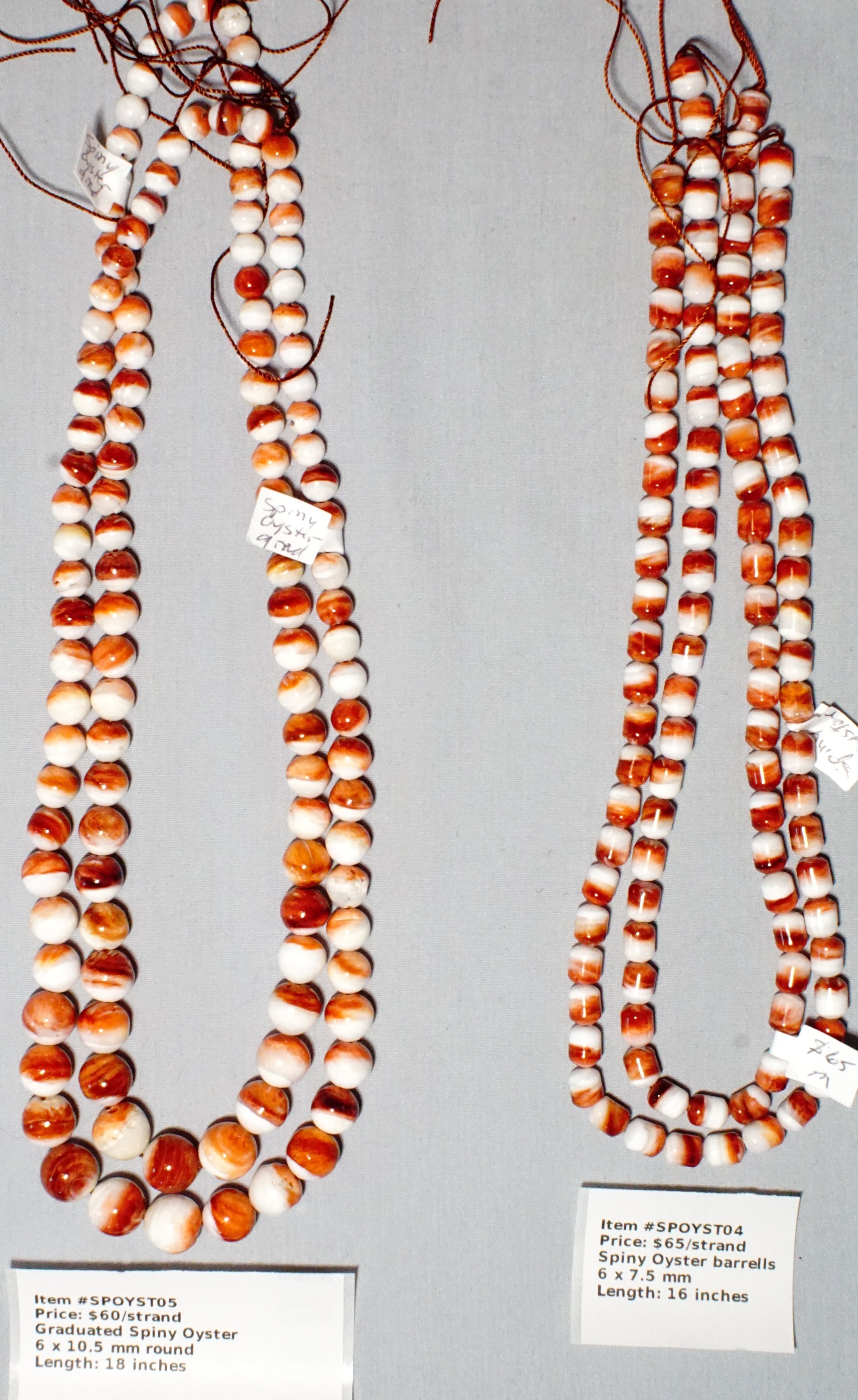 Item # - SPOYST05-Graduated Spiny Oyster, 6 x 10.5 mm, $60 Item # - SPOYST04-Spiny Oystger barrells, 6x7.5 mm, $65   (30/36)